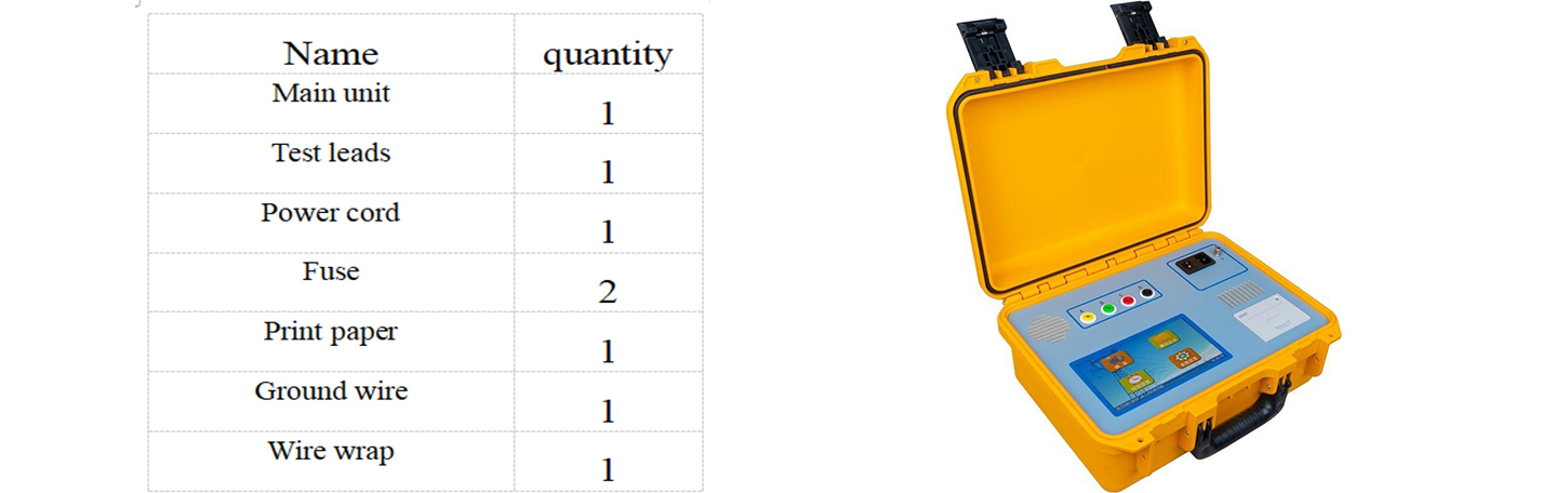 Test range | Transition resistance: 0.5Ω~20Ω(1.0A), 0.5Ω~40Ω(0.5A) |