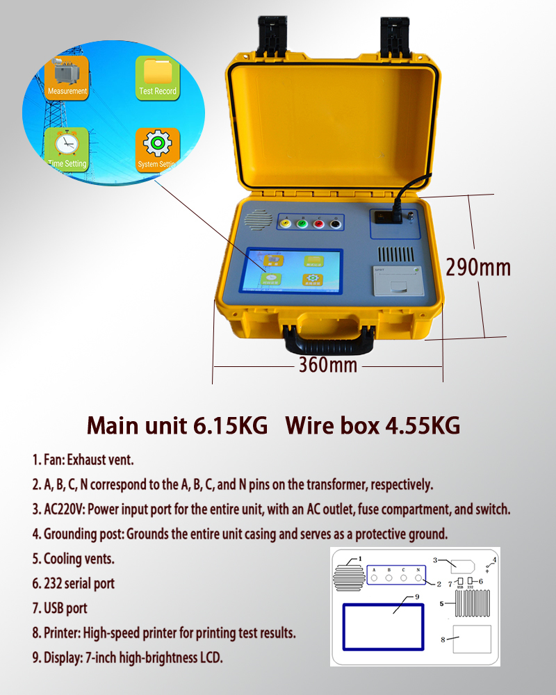 As the only moving part connected to the transformer circuit, the on-load tap-changer has garnered increasing attention for its detection. This instrument measures the transition waveform, transition time, transient resistance value of the on-load tap changer, and ensures three-phase consistency. It is highly intelligent, with an all-English menu and straightforward operation. The instrument is small, light, and robust against interference, which greatly lightens the workload of on-site workers. It is an ideal choice for power generation and supply units, as well as transformer manufacturers, to ensure safe production and improve product quality.